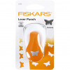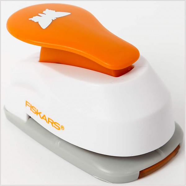Hebelstanzer von Fiskars - der eingebaute Behälter dient zum Auffangen/Aufbewahren des gestanzten Konfettis.