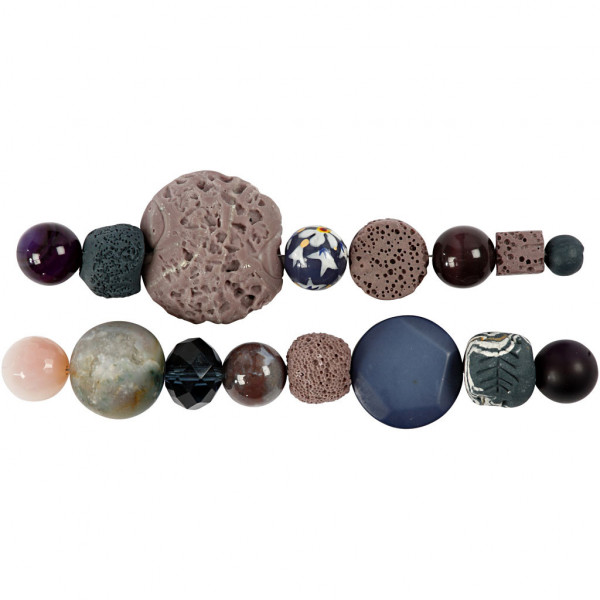 Perlen "Luxus Harmonie" - Sortiment, Größe 6-38 mm, Lochgröße 0,6-2 mm, Blau, Braun, Lila, Schwarz, 1Sortmt., ca. 900 Stck [HOB-99071]