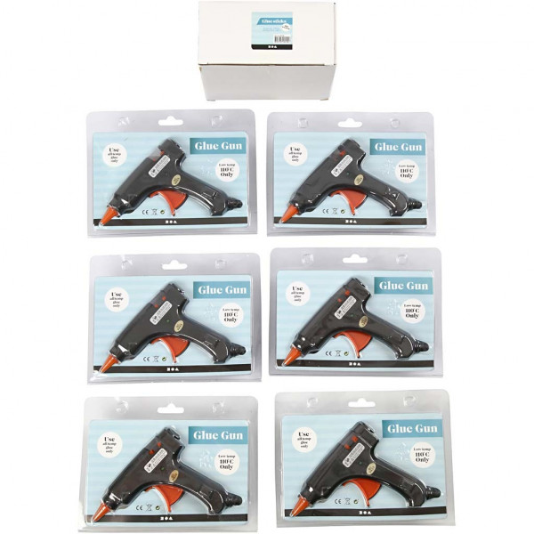 Packung mit 6 Klebepistolen und 200 Klebesticks.