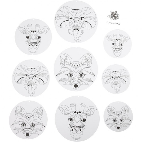 Mobile mit Motiv-Anhängern, Wilde Tiere, D: 12+15+18 cm, 300 g, Weiß, 3Sets [HOB-236270]