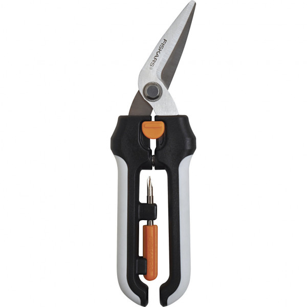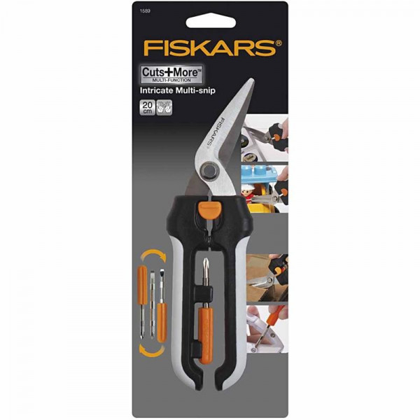 Kräftige Multifunktionsschere von Fiskars mit langer Schneide, kleinem Schraubendreher, Soft-Grip-Griff, usw.