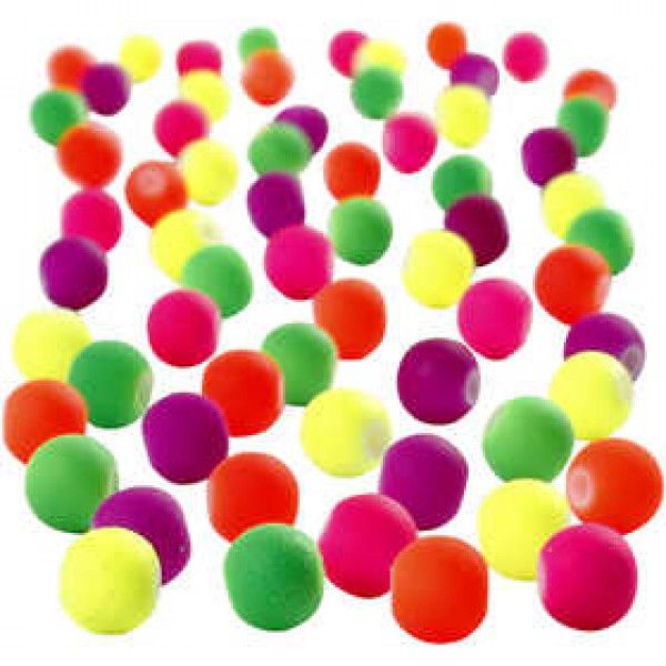 Acrylperlen in tollen Neonfarben mit weicher, gummiartiger Oberfläche. Packung mit 5 Farben.