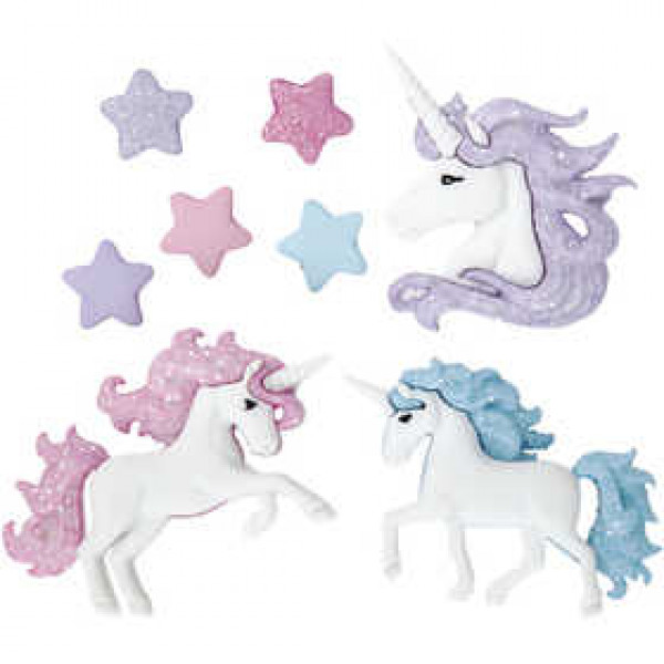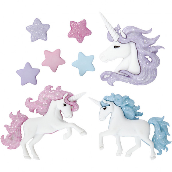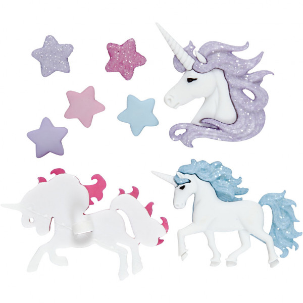 Figuren-Knöpfe, B 9-35 mm, H 9-32 mm, Magisches Einhorn, 3Stck. [HOB-40317]