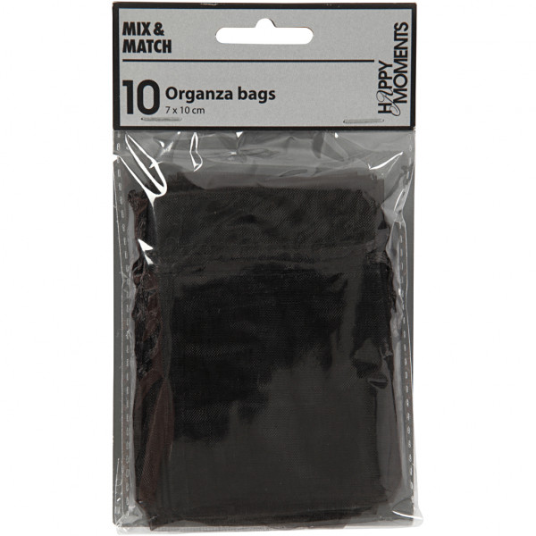 Organza Bags, size 7x10 cm, 10 pcs, black [HOB-4743902]