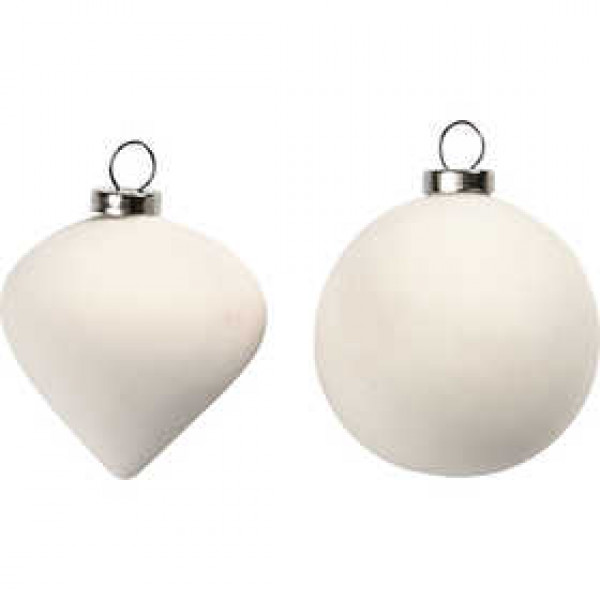 Kugeln aus roher, weißer Terrakotta - mit einer Aufhängeöse aus Metall - Packung mit 2 Designs á 6 Stck.