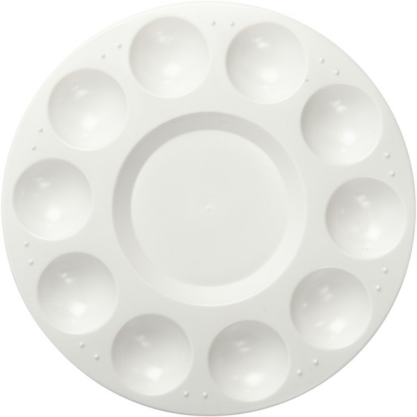 Round plastic palette with 11 wells.