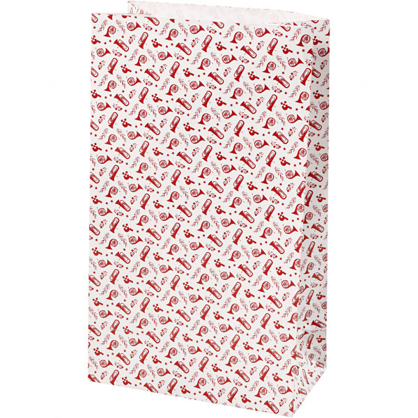 Paper bag, H: 21 cm, size 6x12 cm, 8 pcs, white, red [HOB-25352]