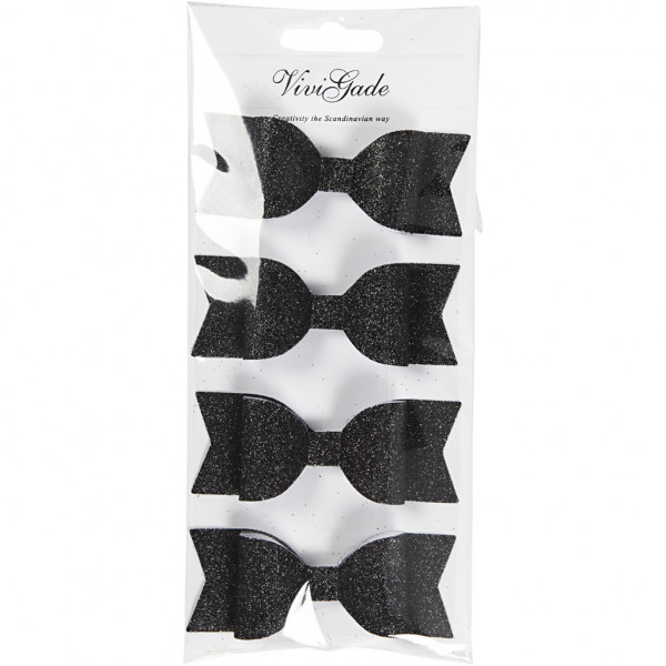 Papier-Schleifen, Größe 31x85 mm, Schwarz mit Glitter, 4Stck. [HOB-24789]