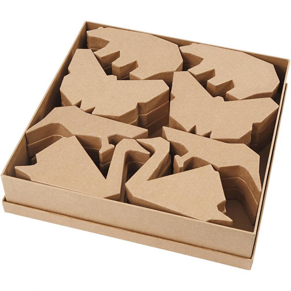 Pappmaché-Tiere, H 10,5-12,5 cm, Stärke: 25 mm, 24Stck. [HOB-99357]