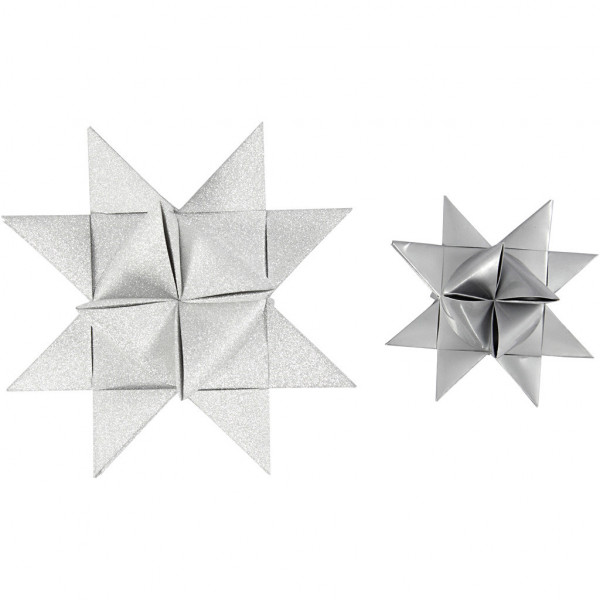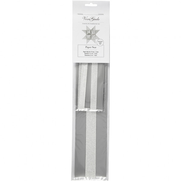 Folienstreifen für Fröbelsterne, B 15+25 mm, D: 6,5+11,5 cm, Silber, Glitter & Lack, 40Streifen, L 44+78 cm [HOB-24372]