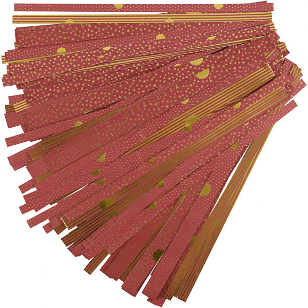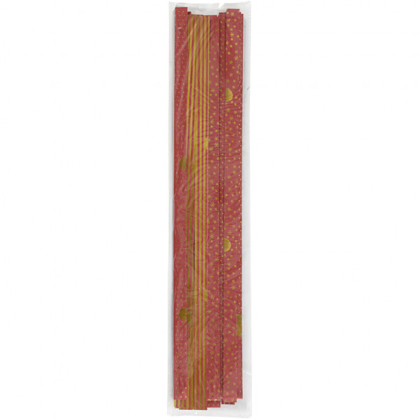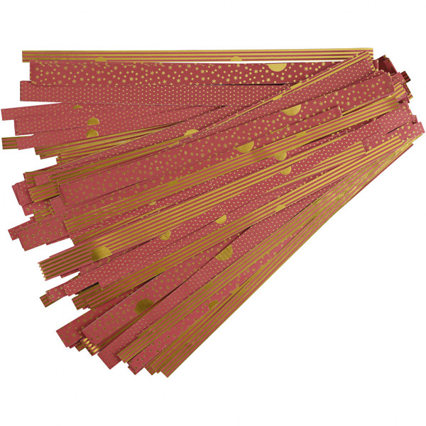 Papierstreifen für Sterne, B 15+25 mm, D: 6,5+11,5 cm, Gold, Rot, 48Streifen, L 44+78 cm [HOB-225612]