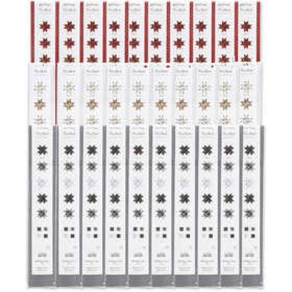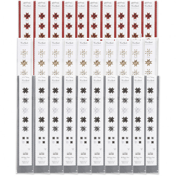 Sortiment zweidimensionaler Multicolor-Papierstreifen - Design Vivi Gade - Kollektion enthält 3 Muster mit 2-seitigem Druck und Sternspitzen aus Metallfolie als Highlights - Durchmesser = fertige Sterngröße - Anleitung beiliegend.