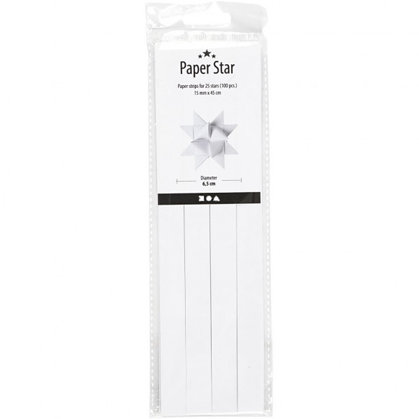 Papierstreifen für Fröbelsterne, B 15 mm, D: 6,5 cm, Weiß, 100Streifen [HOB-209330]