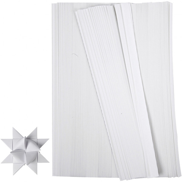 Papierstreifen für Fröbelsterne, B 15 mm, D: 6,5 cm, Weiß, 500Streifen, L 45 cm [HOB-20933]