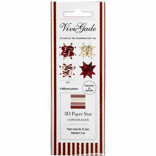 Doppelseitig, aus der Vivi Gade Design Serie - der Durchmesser ist die Größe des gefalteten Sterns. Inkl. Anleitung.