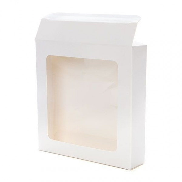 This Glossy White Paper Window Boxes with a Glued-in PET Sheet has these features: