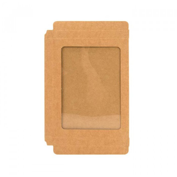 Kraft Paper Window Boxes offer a simple design that lets your product shine. WKRG3 measures 115 x 15 x 150mm and has a glued in poly window opening with dimensions of 95 x 130mm. This box fits eight A2, 5 1/2 Baronial envelopes and cards, and has more depth than our similar-sized WKRG6 box. Made from recycled material and brown 300 gsm Kraft paper, this do-it-all box is flexible and works great for candy, cookies, jewelry, and lightweight gifts. The poly sheet is made from 250 micron PET material that is FDA approved for contact with food and provides archival quality to protect paper products. Boxes ship flat to save on shipping costs. Easily assemble by folding along soft creases and tuck the tab for a secure closure. The solid Kraft back provides space for labeling or a custom design.