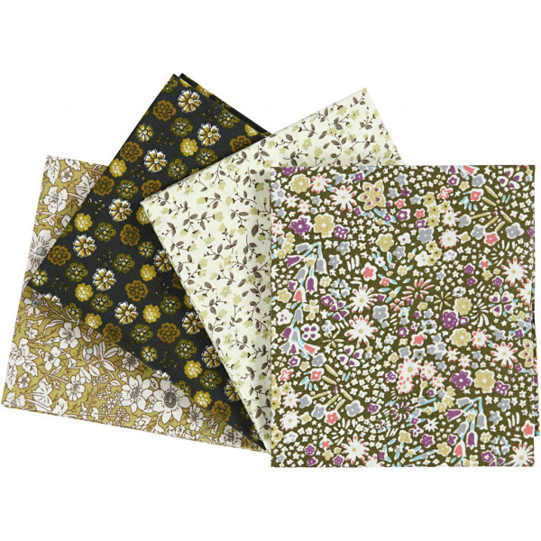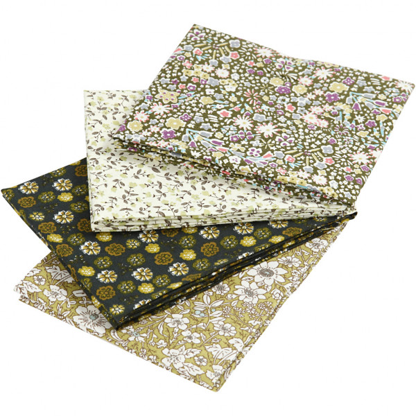 Patchwork-Stoff, Größe 45x55 cm,  100 g/qm, Grün, 4Stck. [HOB-44179]