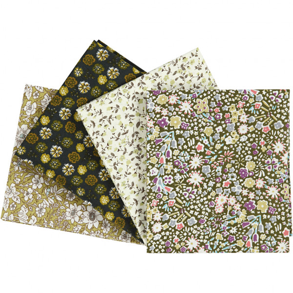 Patchwork-Stoff, Größe 45x55 cm, 100 g/qm, Grün, 4Stck. [HOB-44179]
