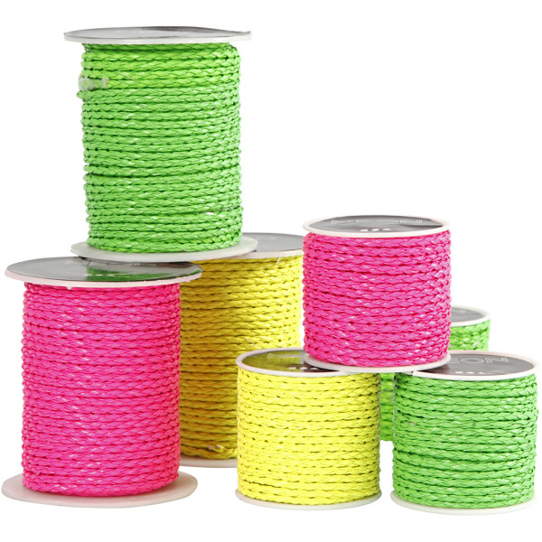 Flechtband, Stärke: 3 mm, Neongrün, Neongelb, Neonpink, 100m [HOB-51437]