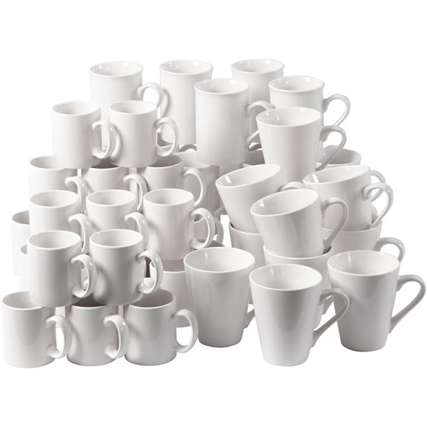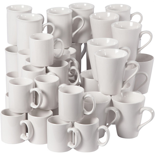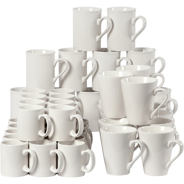 Inhalt: 48 weiße Becher in verschiedenen Formen.