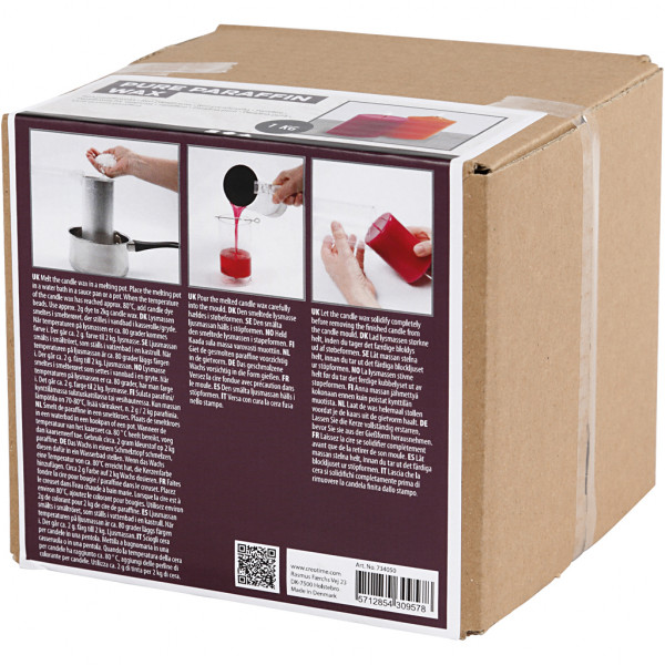 Can be used pure or blended with max 15% stearin (Item N. 73410) or max 1% special wax (Item N. 73440). Melting Temperature: 60 degrees. Immersion temperature: 70 degrees.