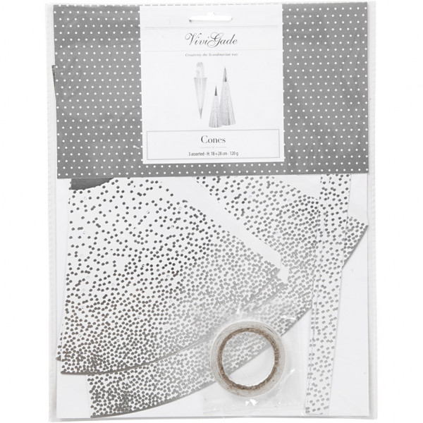 Spitztüten, H 18+28 cm, 120 g, Weiß, Silber, 3Stck. [HOB-24365]