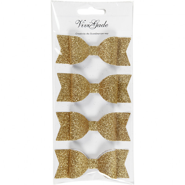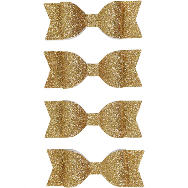 Papier-Schleifen, Größe 31x85 mm, Gold mit Glitter, 4Stck. [HOB-24778]