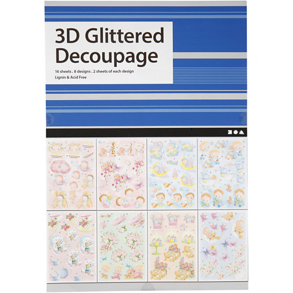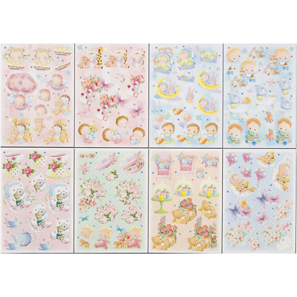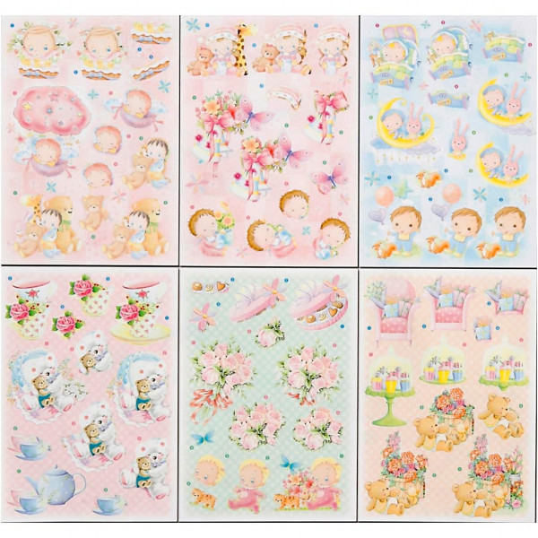 3D Decoupage-Anhänger, Blatt 21x30 cm, Alltägliches, 16Bl. sort. [HOB-28658]