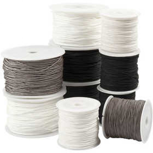Macramé-Kordel, Stärke: 1-2 mm, Braun/Weiß, Weiß, Schwarz, 10x50m [HOB-41581]