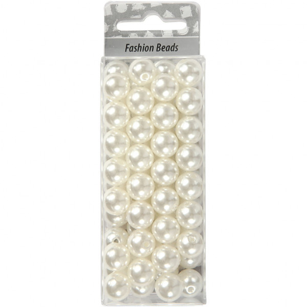 Perle aus Kunststoff, Größe 12 mm, Lochgröße 1,2 mm, Perlmutt, rund, 52g, 60 Stck [HOB-51081]