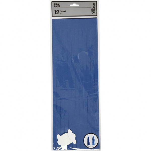 Papier-Quasten, Dunkelblau/Hellblau, Größe 12x35 cm, 14 g, 12Stck. [HOB-599804]