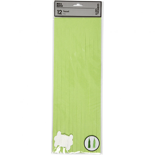 Papier-Quasten, Dunkelgrün/Mintgrün, Größe 12x35 cm, 14 g, 12Stck. [HOB-599807]
