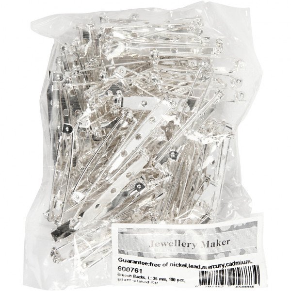 Broschenrückseite, L 35 mm, Versilbert, 100Stck. [HOB-600761]
