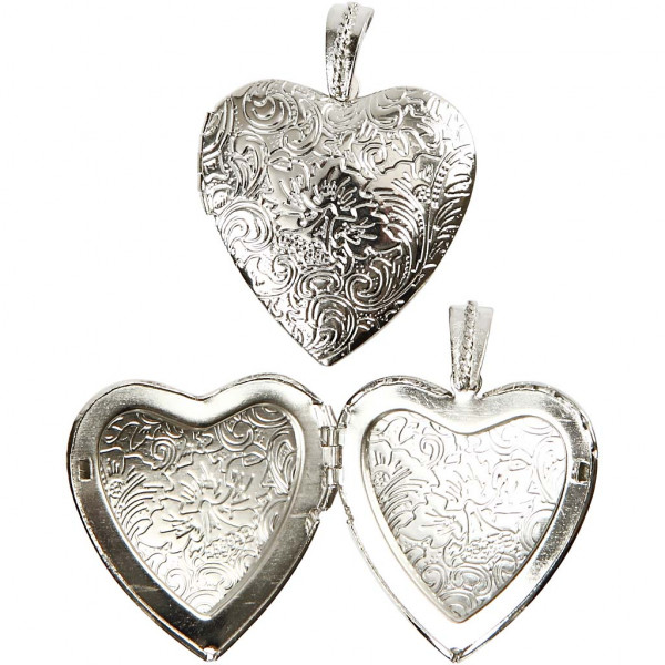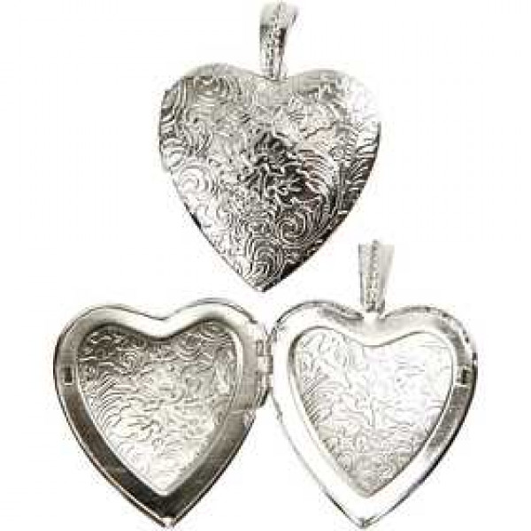 Anhänger, D: 40 mm, Versilbert, großes Herz, 1Stck [HOB-60474]