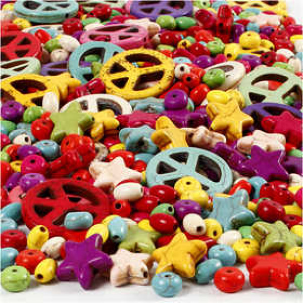 Howlith-Perlen, Größe 4-25 mm, Lochgröße 1,5 mm, Kräftige Farben, 840Stck. [HOB-69881]