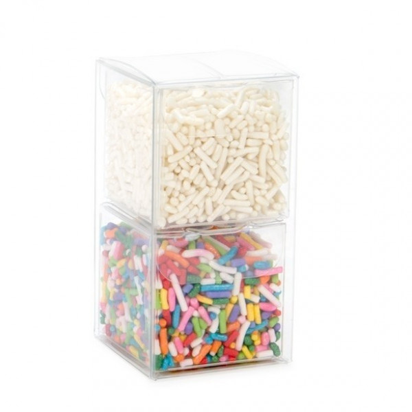 Pack Quantity: 25Color: ClearThickness: 300 micronMaterial: PETOuter Box Dimensions: 41 x 41 x 79 mm Inner Box Dimensions: 38 x 38 x 38 mmClosure: Pop & LockHeat Sealable: NoFood Safe: Yes