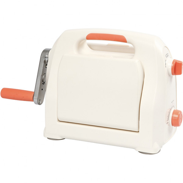 Inhalt: 1 Stanz-/Prägegerät mit robuster Arbeitsplattform, 1 Acryl-Stanzmatte und 1 Stanzplatte - Hinweis: der Griff liegt im Staufach.