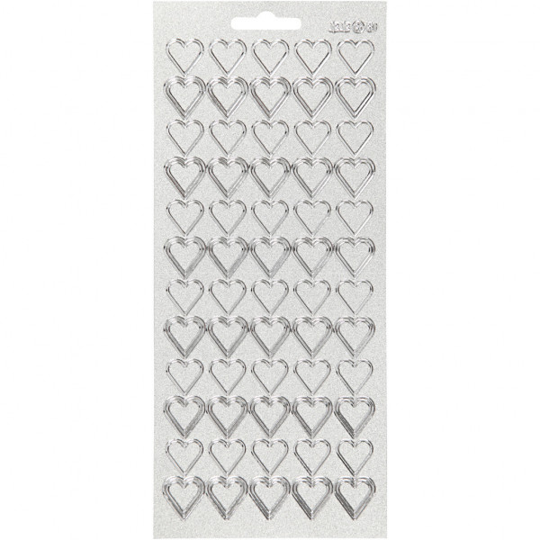 Sticker, Blatt 10x23 cm, Silber, Herzen, 1Bl. [HOB-170018]