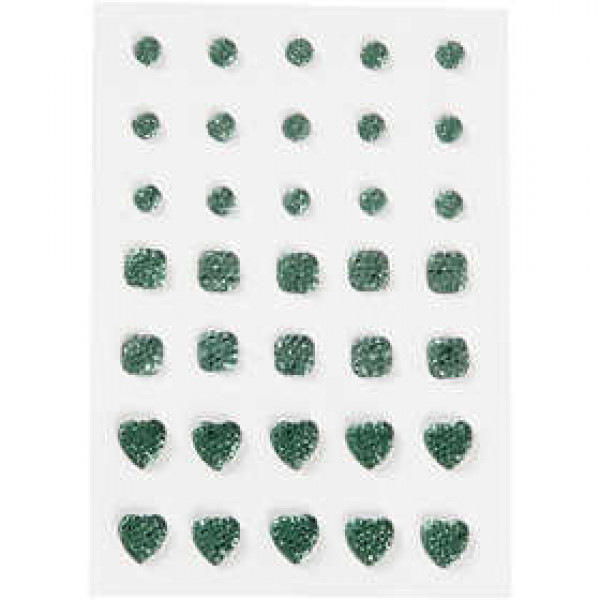 Strasssteine, Größe 6+8+10 mm, Grün, rund, quadratisch, herzförmig, 35Stck. [HOB-24381]
