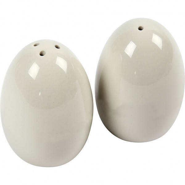 Salt and pepper set of glazed ceramic with glossy surface. Colour differences may occur.