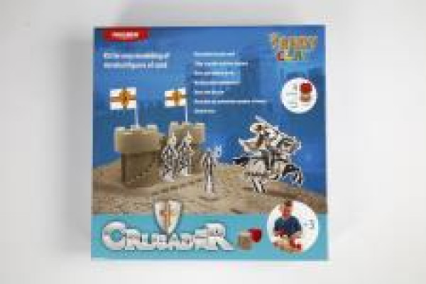 Packung mit 4 sortierten Formen, Flaggen, 1500 g Sandy Clay, Papp-Figuren und Papp-Kulisse mit Stimmungsbild.