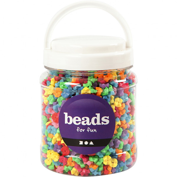 Bastelperlen in verschiedenen Formen & Farben, D: 9,5 mm, Lochgröße 1,5 mm, Sortierte Farben, Ca. 2200 Stück, 700ml, ca. 380 g [HOB-61763]