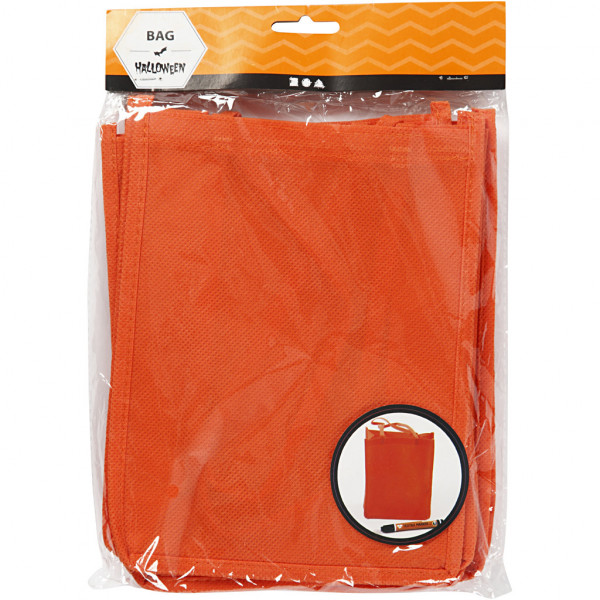 Kleine Tasche aus Stoff-Imitat mit schulterlangen Henkeln - zum Bemalen mit Stoffmalstiften - geeignet für 'Trick or Treat'.