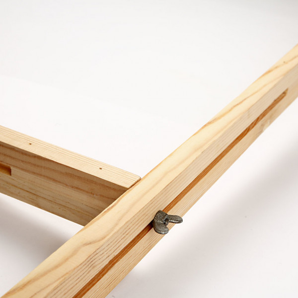 Set aus 2 Holzleisten - können mit Artikel 57593 zu einem quadratischen oder rechteckigen Rahmen zusammengesetzt werden. Jede Leiste hat einen Längsschlitz in der Leistenmitte sowie ein Metallgewinde mit verstellbarer Flügelschraube am Ende.