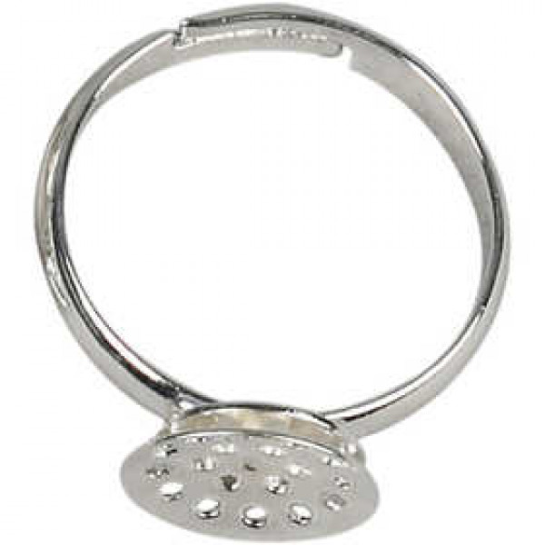 Fingerring mit Siebplatte, D: 17-20 mm, Versilbert, 15Stck. [HOB-61315]
