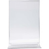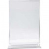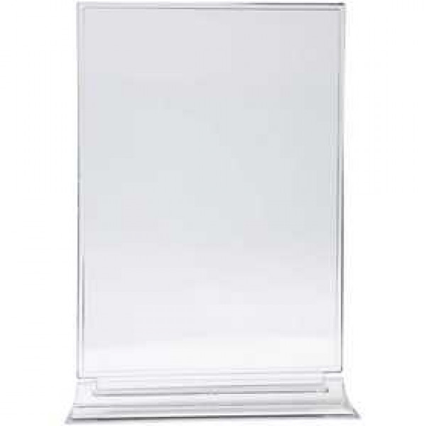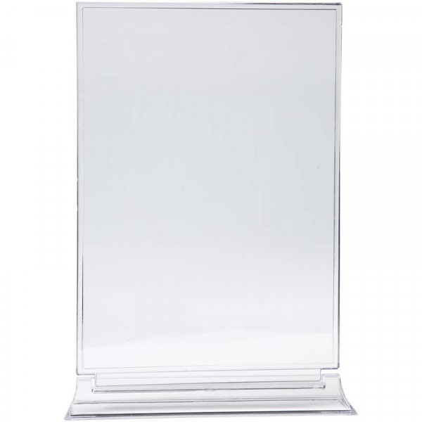 Schilderhalter aus transparentem Acryl mit Standfuß.