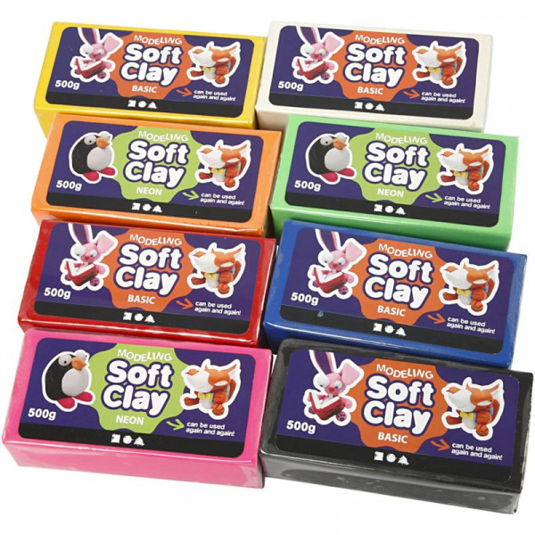 Soft Clay, Größe 13x6x4 cm, Sortierte Farben, 8x500g [HOB-78695]