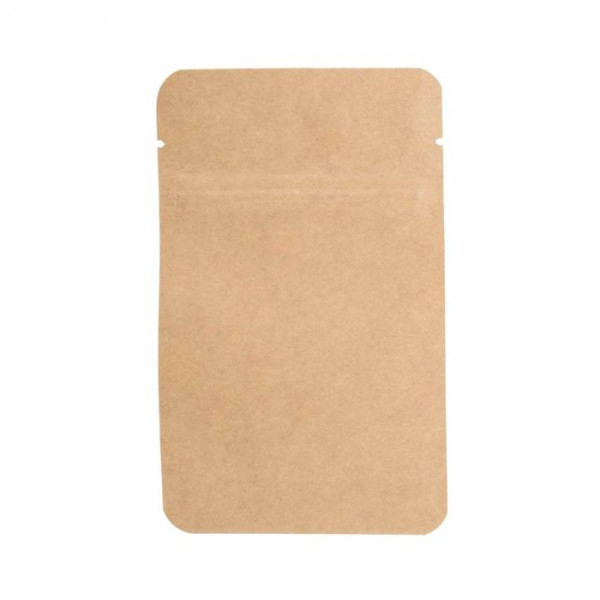 Our 1oz/28g Solid Kraft Zipper Pouch is ideal for single servings or small portions. ZBGSK1 measures 80 x 50 130 mm. This pouch has an earth-tone color that gives off a natural vibe. Package organic ground coffee, artisan chocolates, flavored teas, sprinkle mixes, vitamins, and more. The self-supporting pouch design is 6 mil thick and has a laminated interior to seal in freshness and aromas. An airtight zipper provides a secure closure. Tear notches provide easy access to your product when this pouch is heat sealed. This solid Kraft design allows you to fully customize this package with space for labels or product branding.