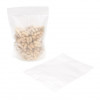 Our durable matte frosted stand up pouches allow you to package bulk items with sophisticated style. The ZBGF5 zipper top pouch measures 210 x 89 x 292 mm and has a usable space of 200 x 79 x 254 mm. The pouch is ideal for holding 510 gr of dry goods and specialty food products. Package popcorn, chips, pretzels, detergent pods, pet food, and more. This 135 micron bag provides heavy-duty protection and is constructed with a high barrier to protect against moisture, odor, and oxygen. A strong, resealable zipper and laminated interior seal in freshness, flavors, and aromas. This pouch is heat sealable for a tamper-resistant closure. Semi-transparent panels offer a smooth finish and provide ample space for product branding and labeling. Custom printing is available.